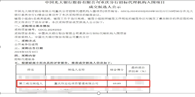 重慶欣宏達項目管理有限公司中標中國光大銀行股份有限公司重慶分行2025年—2027年招標代理機構入圍..