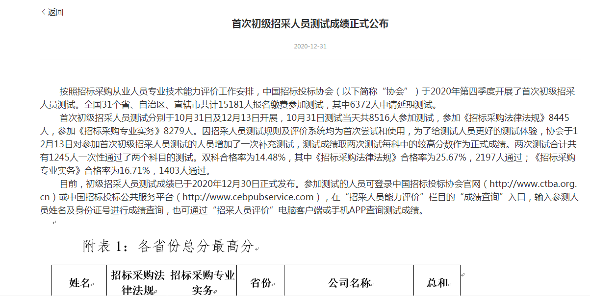 近日,隨著首次初級招采人員測試成績正式公布,歷時兩個月,備受關注的招標采購從業人員專業技術能力評價(初級招采人員測試)本年度“賽段”結束。 首次初級招采人員測試包含《招標采購法律法規》以及《招標采購專業實務》兩個科目。從中國招標投標協會網站公布的數據分析,不難看出,此次測試難度很大,雙科合格率僅為14.48%。在此,小編豎起大拇指,為順利通關的童鞋們默默點了一個贊。沒有取得理想成績的童鞋也不要氣餒,咱們收拾心情,重整旗鼓,爭取來年抱得大紅花。