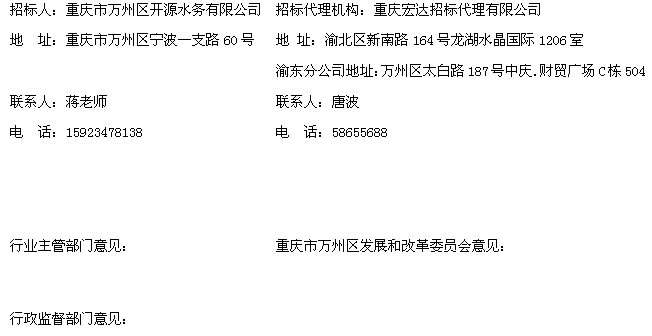 3. 投標人資格要求 3.1本次招標實行資格后審,投標人須具備獨立法人資格,并具備建設行政主管部門頒發的市政行業乙級及以上設計資質或環境工程(水污染防治)專項乙級及以上設計資質,并在人員、設備、資金等方面具有相應的設計能力。 3.2本次招標不接受聯合體投標。 4. 招標文件的獲取 4.1公告發布時間:2015年5月28日至2015年6月1日。 4.2 本工程需先在萬州區公共資源招投標企業信息系統(http://www.wzqztb.com/wzhy)上注冊成為誠信庫正式會員并報名。招標文件、答疑等開標前的有關資料及相關事宜在重慶市萬州區公共資源交易信息(http://www.wzqztb.com)網上下載。不管下載與否都視為投標人全部知曉有關招標過程和事宜。在投標截止日前,各投標單位應隨時關注網上(http://www.wzqztb.com)發布的招標補疑通知。 5. 投標截止和開標時間及地點 5.1投標截止和開標時間:2015年6月18日北京時間9時30分。 5.2投標和開標地點:重慶市萬州區公共資源綜合交易中心。 5.3逾期送達的或者未送達指定地點的投標文件,招標人不予受理。 6.發布公告的媒介:本次招標公告在重慶市招標投標綜合網、重慶市萬州區公共資源交易信息網上發布。 7.聯系方式: