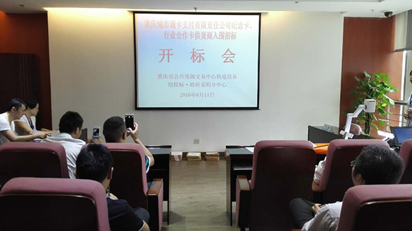 重慶城市通卡支付有限責任公司紀念卡、行業合作卡供貨商入圍招標會議于2016年8月11日在重慶市公共資源交易中心機電設備招投標?政府采購分中心圓滿召開。